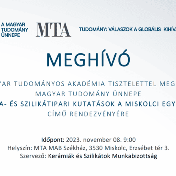 A rendezvény 2023. november 08. 9:00-tól került megrendezésre a MTA MAB Székházban a Kerámiák és Szilikátok Munkabizottság szervezésében. A meghívó és az előadások itt érhetőek el.