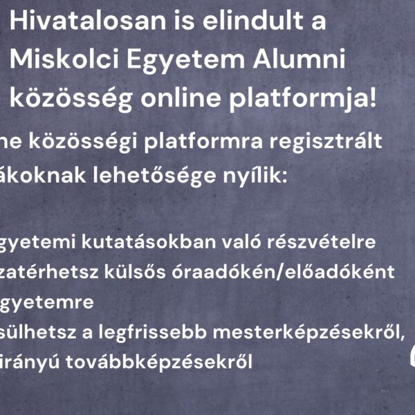 We are pleased to announce that the University of Miskolc Alumni Community online platform is officially launched! 🥁