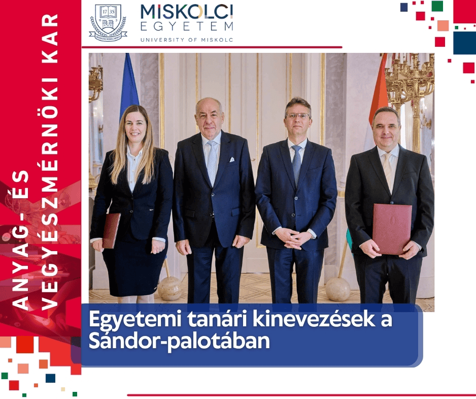 A Miskolci Egyetem Szenátusa ünnepi ülésén több, az Anyag- és Vegyészmérnöki Karhoz tartozó kolléga részesült rangos kitüntetésben, elismerve kiemelkedő tudományos,