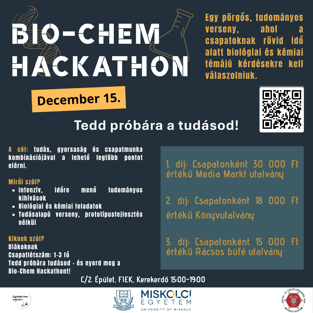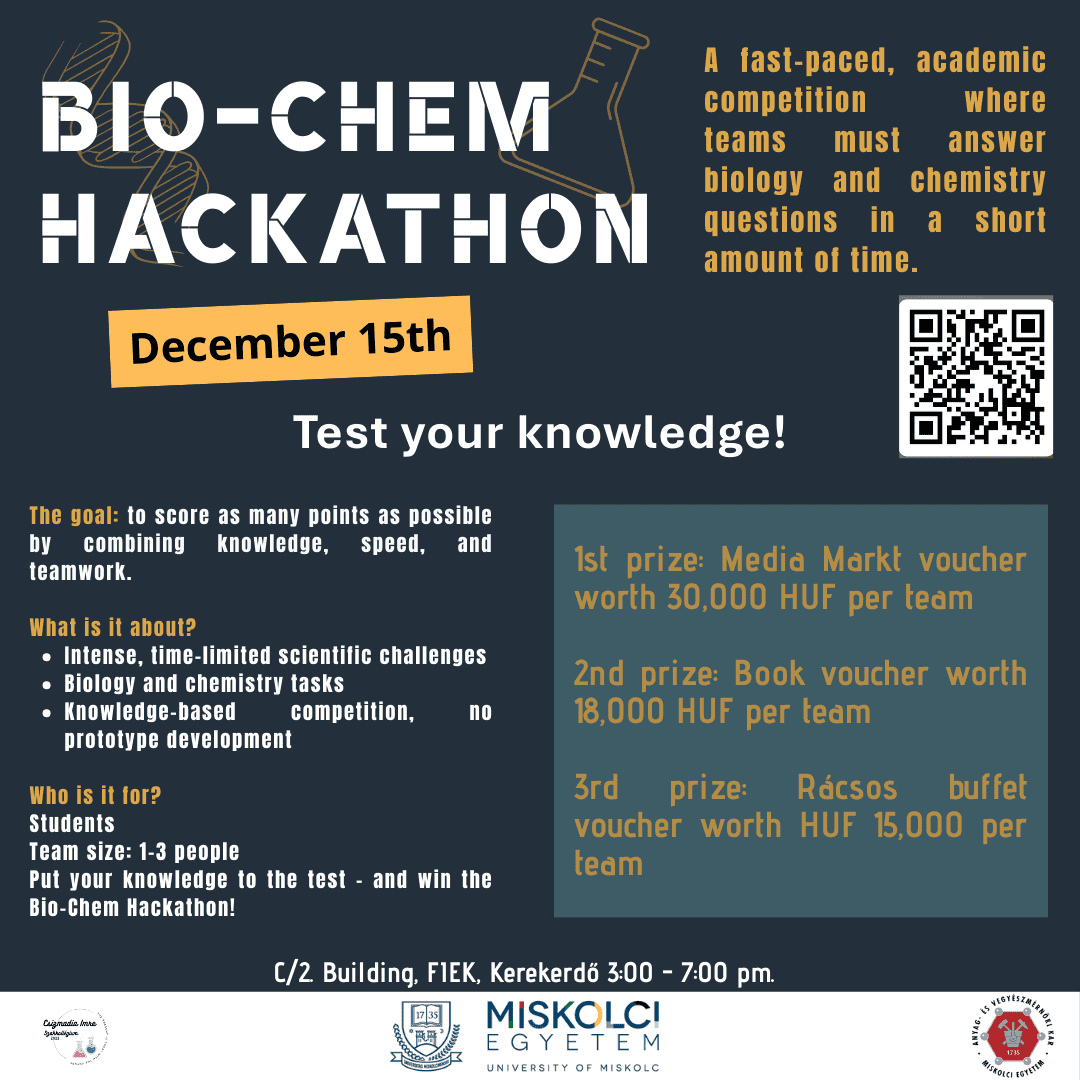BIO-CHEM HACKATON – jelentkezz a Csizmadia Imre Szakkolégium tudományos csapatversenyére!